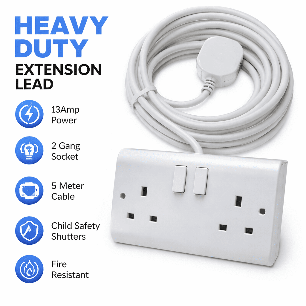25 reviews for Extension Cord Double Socket 13A – Heavy Duty (2m / 5m / 10m)
